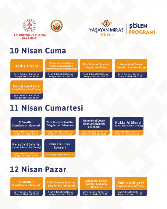 Üç gün sürecek programda el sanatları stantları, Türk süsleme sanatları sergileri ve geleneksel çocuk oyunları etkinlikleri yer alacak. Ayrıca kukla gösterileri, Karagöz gösterisi ve atölye çalışmaları da katılımcılarla buluşacak.